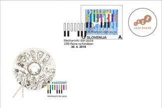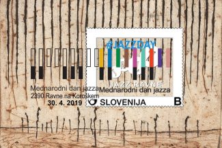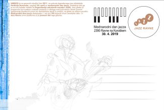 Ob mednarodnem dnevu jazza, 30. aprilu, smo skupaj s Koroškim filatelističnim društvom, oblikovalcem Borutom Bončino in slikarjem Stojanom Brezočnikom predstavili poštno znamko, ki je preplet grafike, logotipa Jazz Ravne in logotipa Mednarodnega dneva jazza. Znamko spremljajo še razglednica, kuverta in dotisk na kuverti, na pošti Ravne na Koroškem pa je bil ob tej priliki na voljo tudi ustrezen poštni žig.